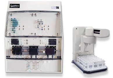 一个基本的SFA系统由自动进样器、蠕动泵、化学分析盒、检测器和计算机组成。样品和试剂通过蠕动泵连续不断地泵入化学反应模块。规则的空气泡把样品分成一小段并在玻璃圈中发生混合反应。